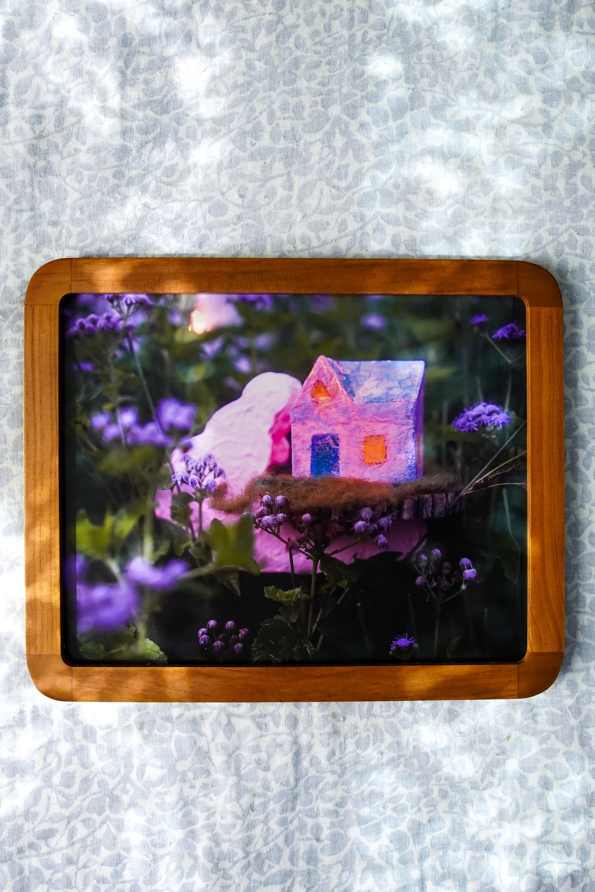 This giclee print is from a photograph I took in my garden this summer with one of the sculptural pieces I created in the last year using recycled materials. The work is rooted in the ways we can exist within the landscape and the power of even the smallest garden.